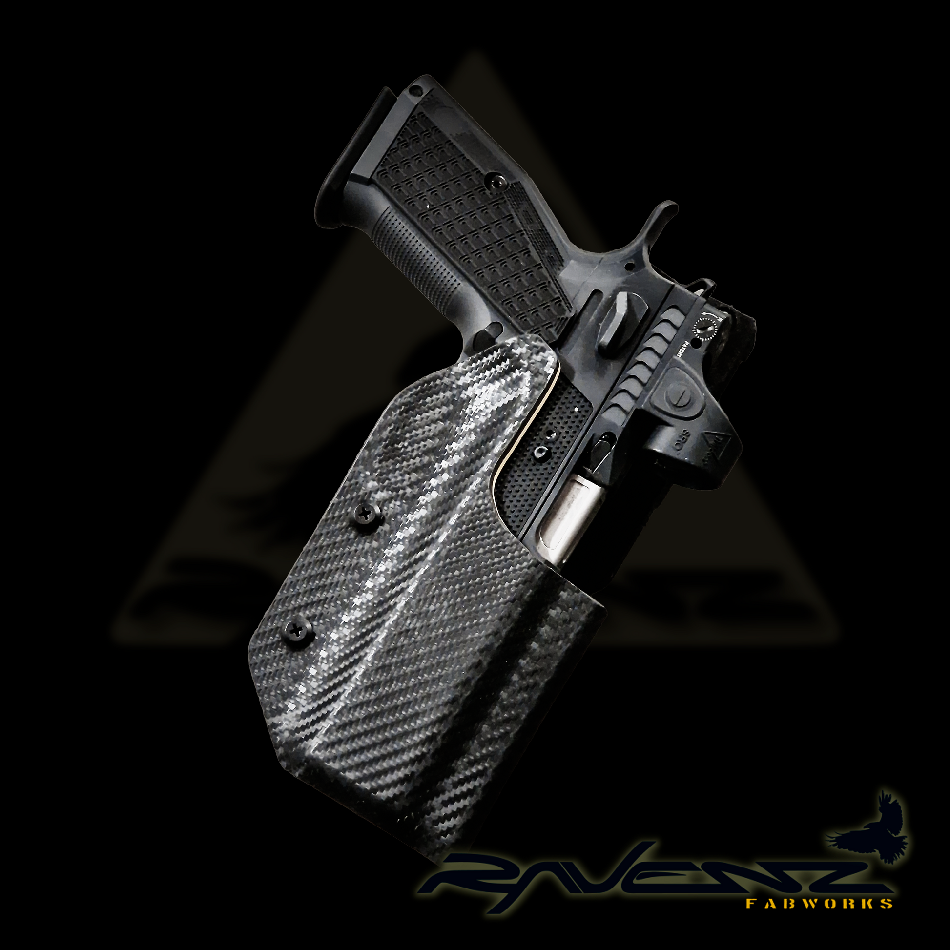 All the holsters are made with a low cut cut-out at the front, and in carbon look black in the outermost layer of kydex